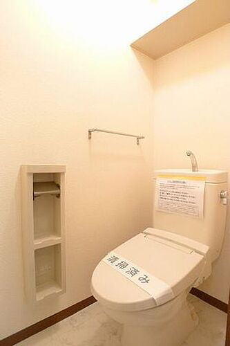 【トイレ】温水洗浄便座つきです☆上部には棚板があります♪