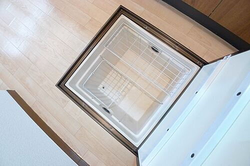 【キッチン】1階のお部屋には床下収納庫が付いています!!ストック置き場や季節物の調理用品を入れておけます♪