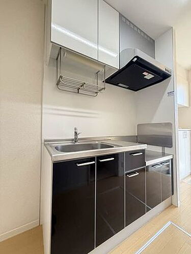 【キッチン】お部屋のカラーコーディネートに合わせた鏡面仕上げの扉パネルを採用したキッチン♪食品等のストックに便利な床下収納庫付き♪