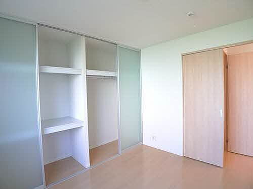 北側の洋室の収納は2段棚の収納とハンガーを掛けられる収納の2タイプ併用です♪衣装ケースやお布団、衣類をハンガーにかけて収納したり、用途によって使い分けができます♪