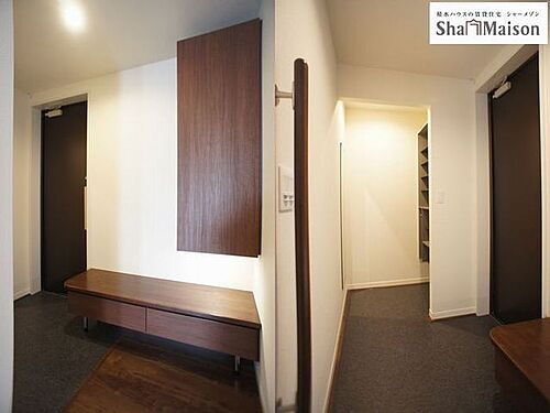 ◆玄関ホール◆ シューズクローゼットも備えており、たくさんの靴が収納できます♪ゴルフバック等を置いておける空間も確保♪靴を脱ぎ履きする際に便利なベンチも備えております♪