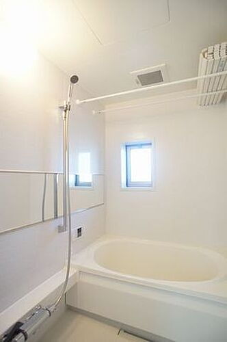 追い焚き機能付きの浴室です!!温度調節可能なサーモスタット水栓付!!上下に移動が可能なスライドバー付です!!