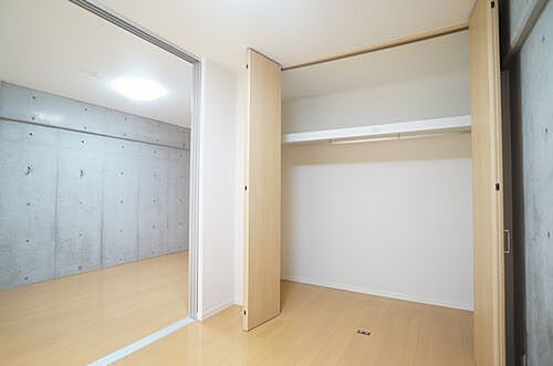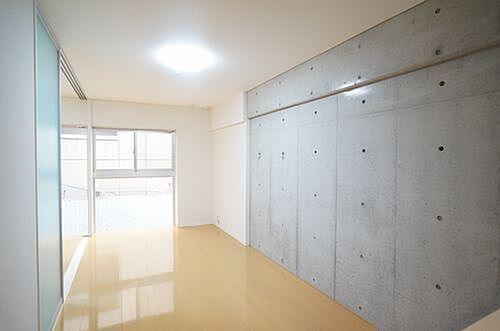 【洋室】LDK隣の洋室は、コンクリート打ちっ放しの壁がワンアクセントで都会的な雰囲気を創出♪部屋干しできる室内物干し器具『ホスクリーン』と『LED照明』付♪