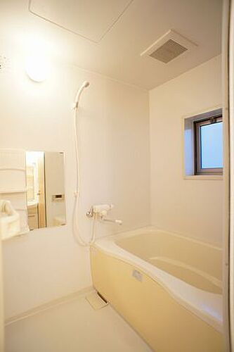 換気を考慮した小窓があって清潔感あるバスルーム☆沸かし直しができて経済的な追焚給湯機能付き♪