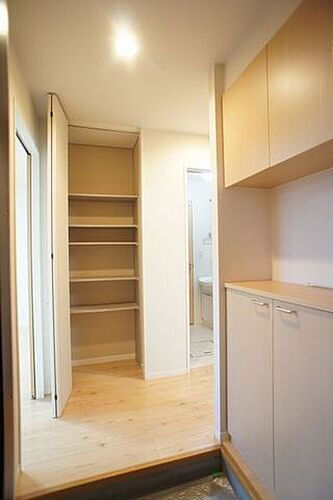 収納するものによって高さ調整が出来る可動式棚を備えた玄関ホール収納♪日用品収納などにご利用ください♪