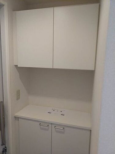 【玄関】上部に吊戸棚もあり靴の収納に便利。飾り棚もあり、お花や家族の写真も飾れます。