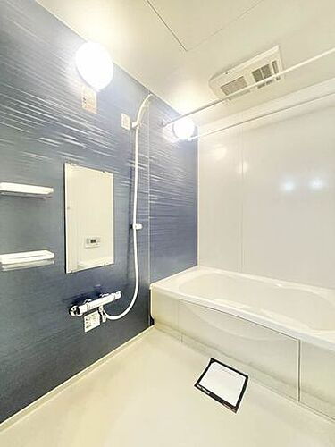 【浴室】アクセントパネルがオシャレな浴室 浴室換気乾燥暖房機設置、サーモスタット水栓