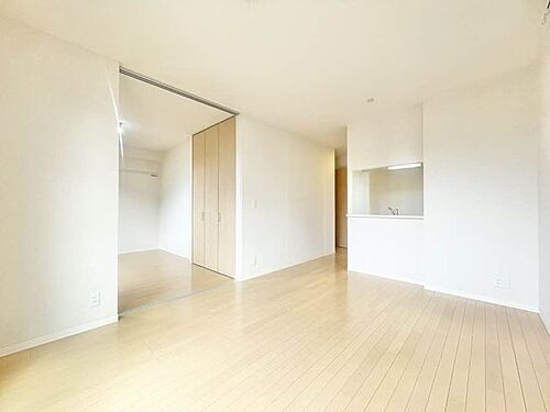 【LDK】対面式タイプのカウンターキッチンを採用したLDK。リビングが見渡せるため、料理をしながら、家族との会話を楽しめます。