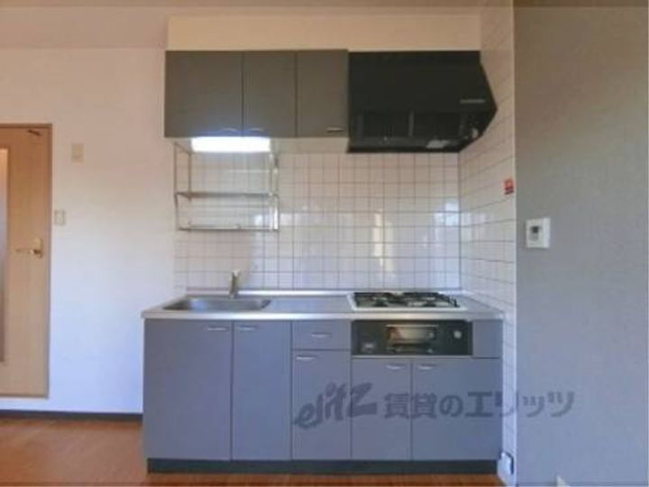JR近江八幡駅まで徒歩7分の物件です。単身の方でも広々と使える間取りとなります。3口コンロ付きのシステムキッチンとなります。近江八幡駅は新快速停車駅ですので電車通勤の方に便利な立地ですね。