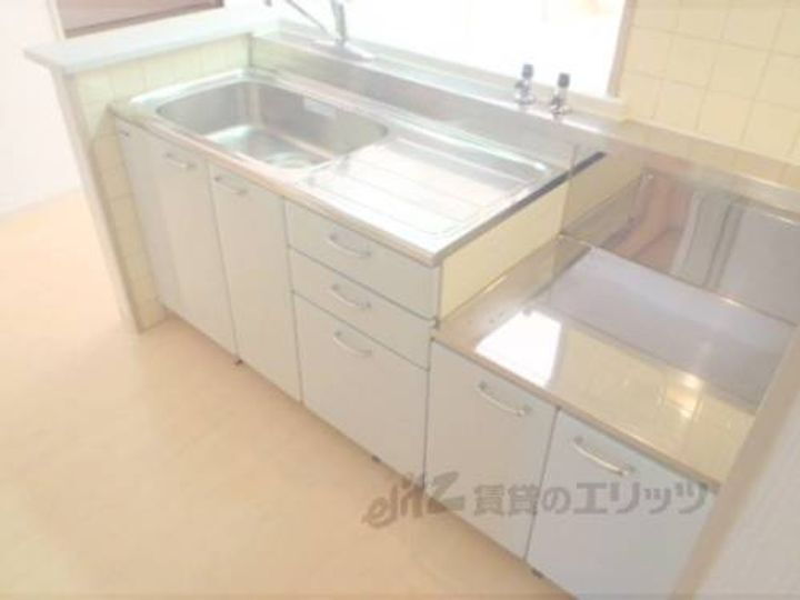 阪急桂駅自転車6分ほどの3LDKタイプ賃貸物件です。2階部分のお部屋です。カウンターキッチンです。広々としたリビングが特徴の3LDKですので子供さんがいらっしゃる方にもオススメ。桂徳小学校区