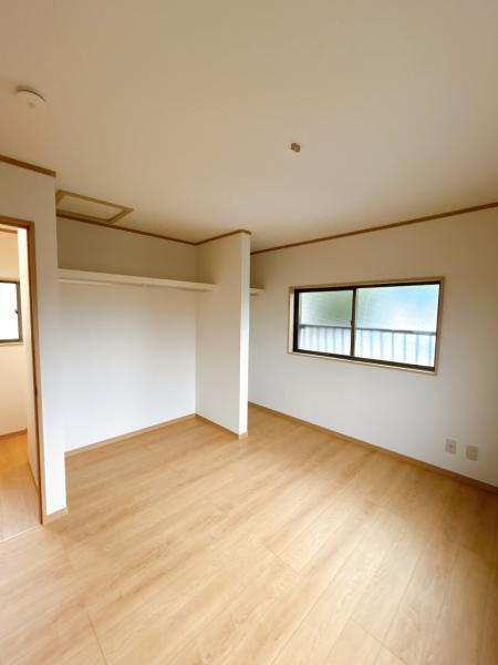 【リフォーム完了】2階東側6帖洋室は壁、天井のクロス張替、照明の新品交換、床はフローリング張りを行いました。1帖サイズのオープンクローゼットも新設しています。