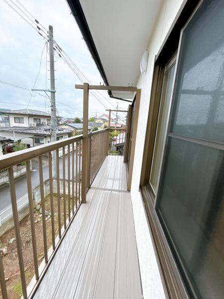 【リフォーム完了】2階バルコニーです。お天気のいい日は布団干し日和。家族のお布団はこちらでも干せます。 お日さまの香りがふんわり香るフカフカのお布団なら疲れた体も「ポカポカ」温まりゆっくり休めますね。