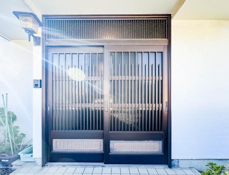 ゆったりした広さがある玄関は、いつも優しく明るく出迎えしてくれます。落ち着いた趣のある建具がホッとさせてくれます。玄関から入る光にによって時折見せる影の表情も魅力の一つですね。 -