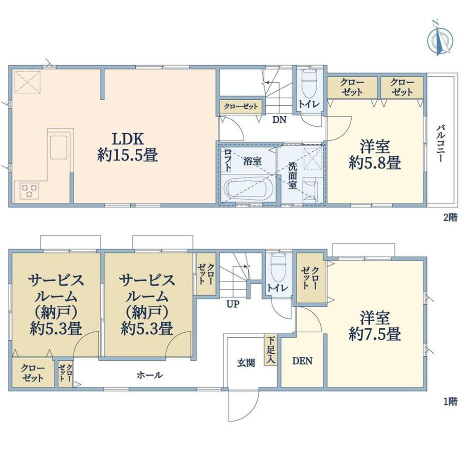 6480万円、2LDK+S、土地面積132.19m2、建物面積99.26m2 間取り図(2LD・K+2納戸)