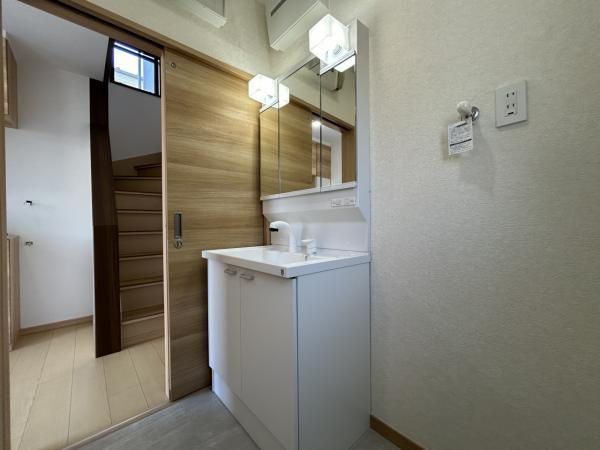 【リフォーム完了済】広々とした洗面室で、スタイリッシュな空間を演出することができます。