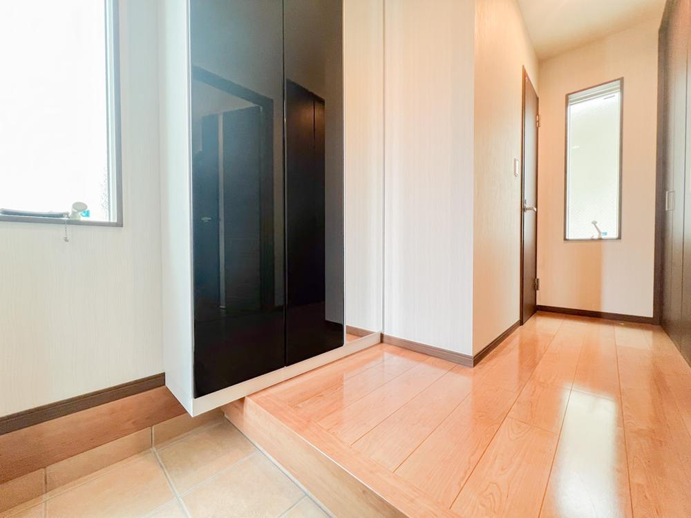 玄関には天井まであるシューズクロゼットに廊下にも様々なものを収納できる収納を完備できます。傘などを置けるスペースも確保されており、散らかりがちな玄関もすっきりします。 -