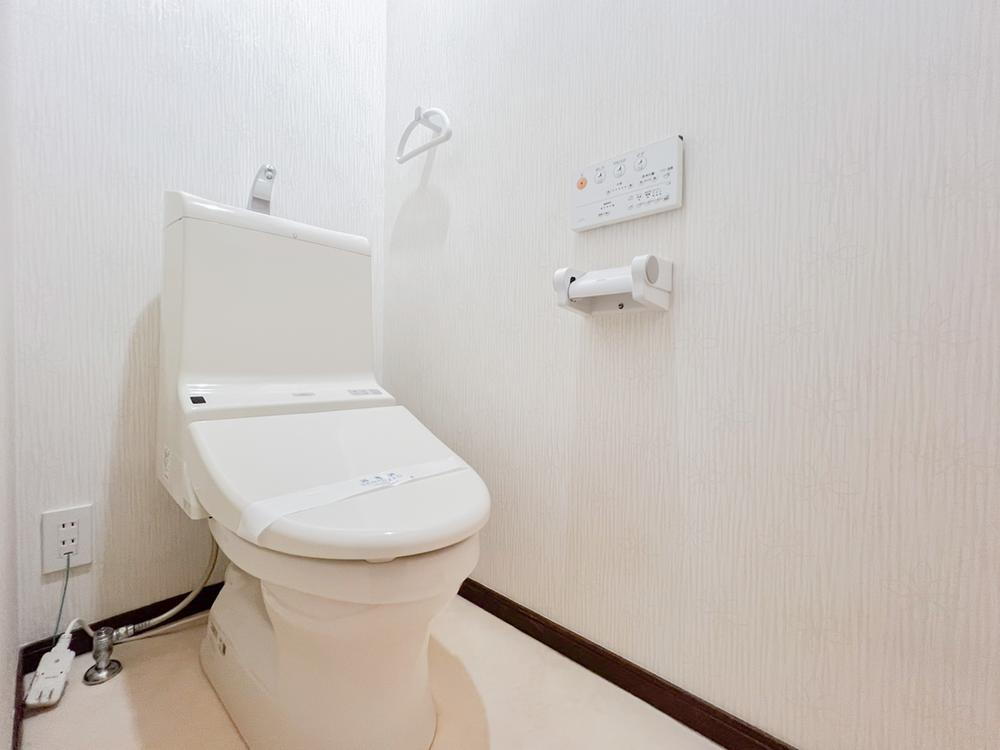 こちらは温水洗浄便座付きです。シンプルに白で統一しており、お家の中でも落ち着ける空間の一つです。 -