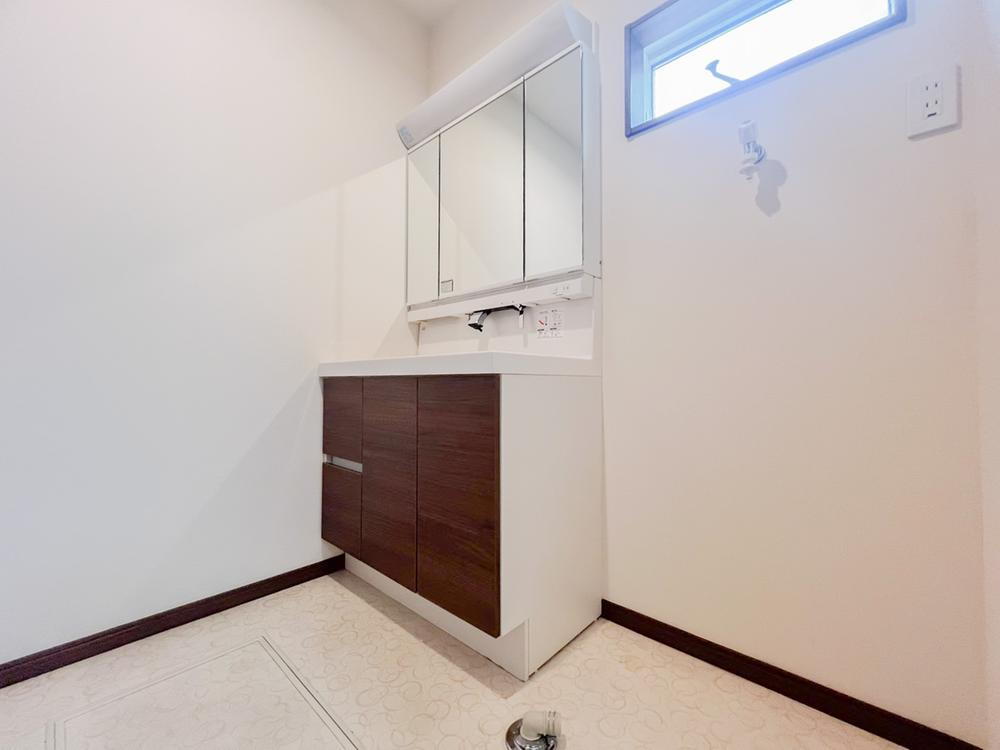 ~洗面台・洗面所~ゆとりのある広さの洗面スペースには作り付けの収納があり、たくさんのリネンの収納にも困りません。