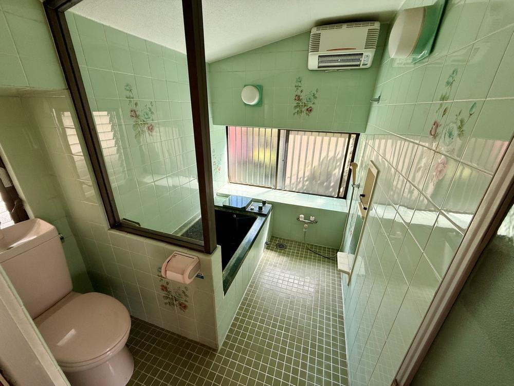 ガラス張り、大き目の窓が設置された開放感あるバスルームです