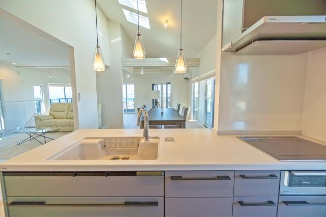 カウンターキッチンからはリビングを一望。室内の一体感を感じることができます。