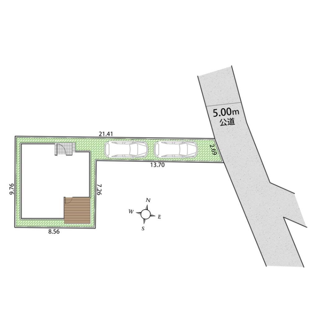 敷地延長部分はカースペースとしてお使いいただけます。お車2台分のスペースが確保されています。