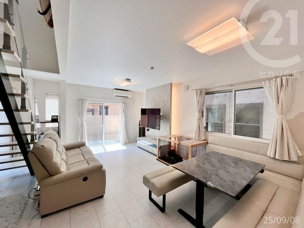スケルトン階段でデザイン性の高いリビング◎階段下まで空間が広がっており、開放感があります。