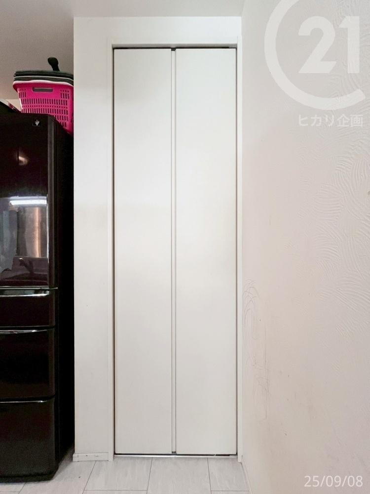 <キッチン横収納>キッチン用品や食材のストックなどのしまい場所に便利です。