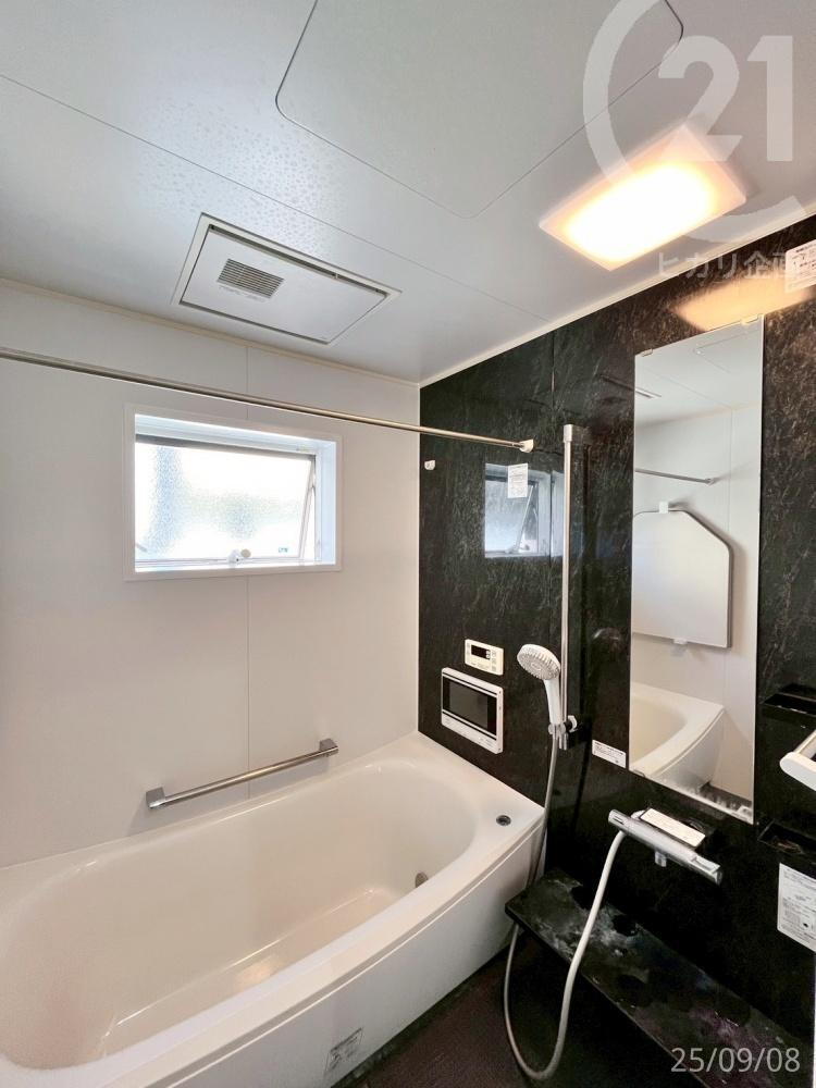 1坪サイズのユニットバスは足をのばしてのびのびくつろげます。お子さまとの入浴もスムーズ!また、浴室乾燥機・浴室TV付きです。