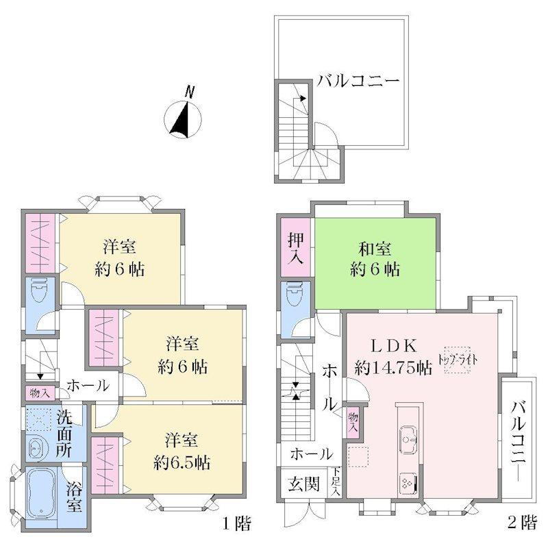 <物件名>上末吉1 2580万円/<土地権利>所有権/<間取り>4LDK/<特徴>\ ルーフバルコニー付き2階建て /延床面積96.05㎡の4LDKタイプ、2沿線以上利用可・スーパー 徒歩10分以内・システムキッチン・陽当り良好・全居室収納