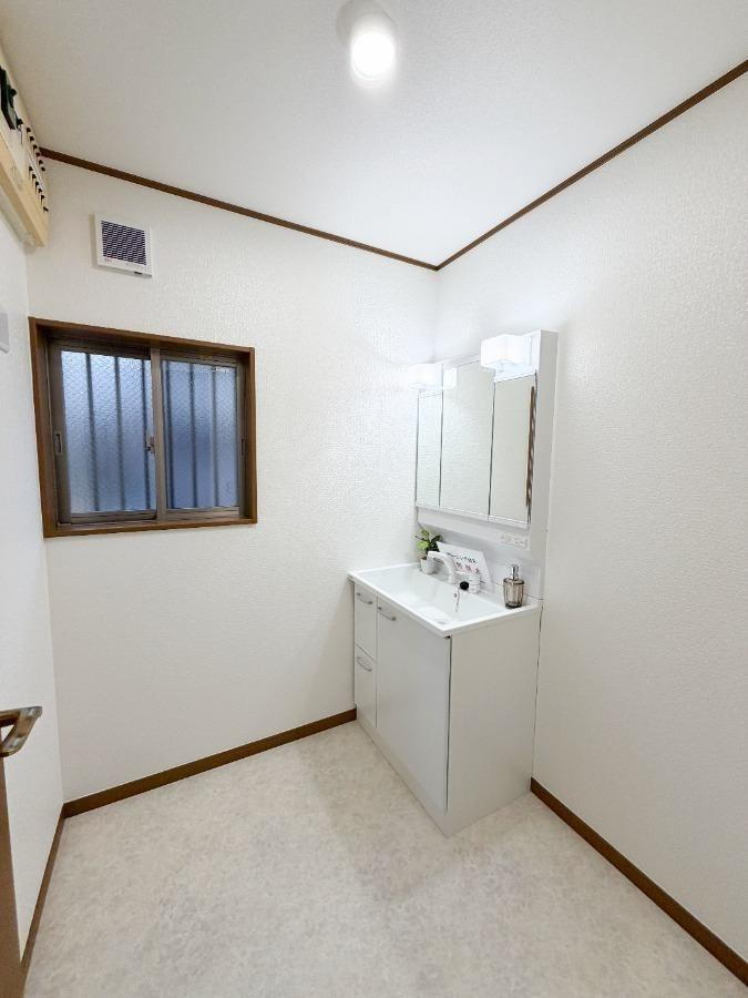 1階洗面室|洗面台を新調♪毎朝の支度が気持ちよく始まる、清潔感あふれる洗面室です。■2025年10月下旬リフォーム完成