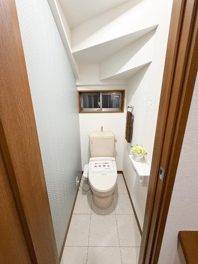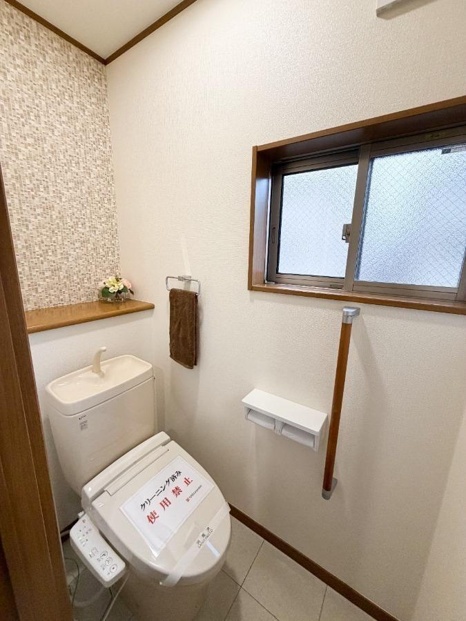 2階トイレ|温水洗浄暖房便座・ペーパーホルダー新調済み。清潔で使いやすいトイレ空間です。■2025年10月下旬リフォーム完成