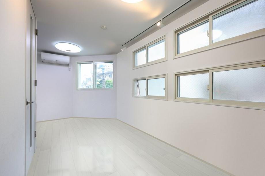 角地に建つ3階建の戸建。窓が多く、室内は明るく通風良好です。