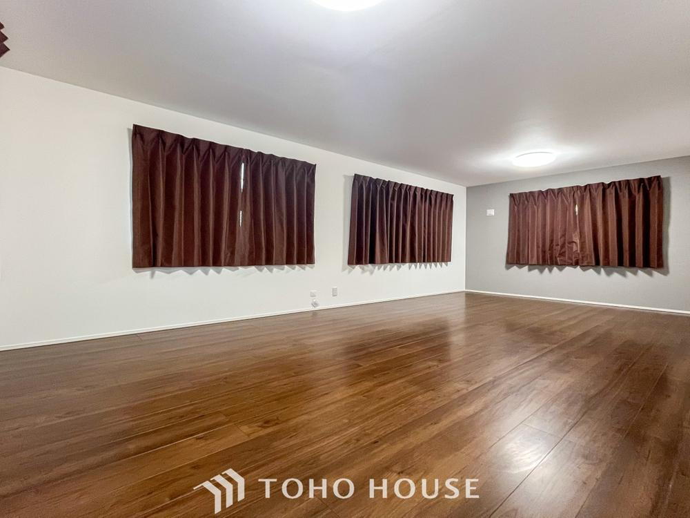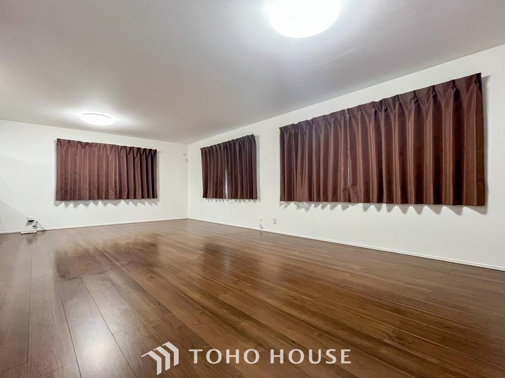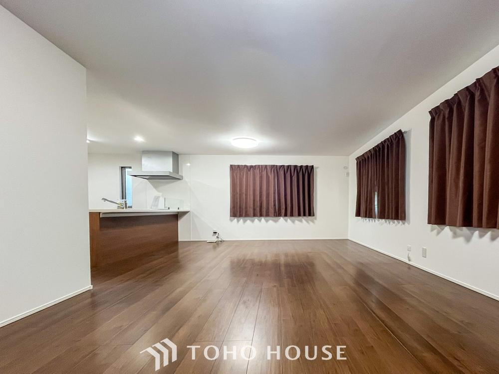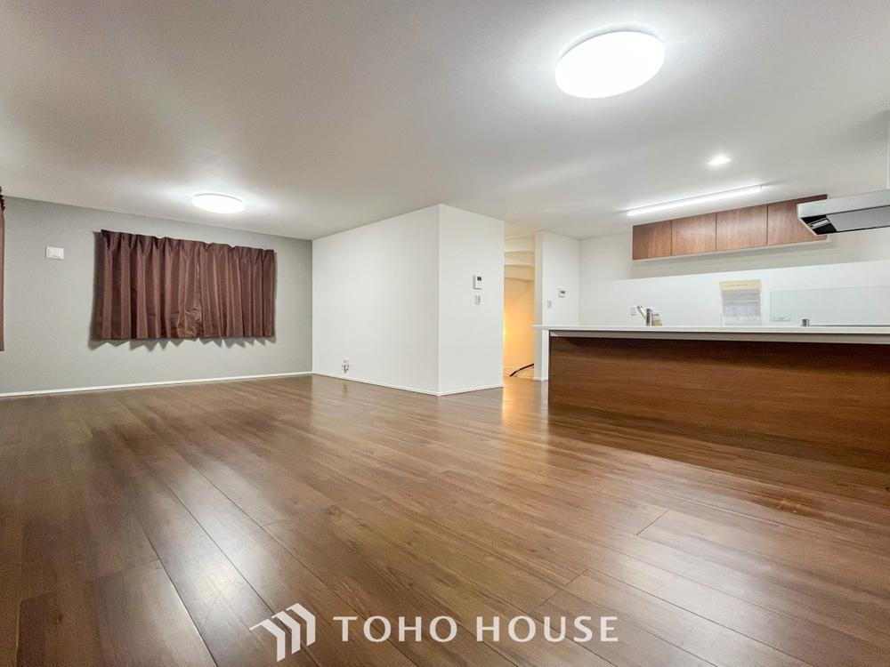 柔らかな色合いのフローリングと清潔感の溢れるクロスが明るい空間を創り出しているリビングダイニング。憩いの場に相応しく、ここで楽しむ家族の時間が絆をより深めてくれそうです。 -
