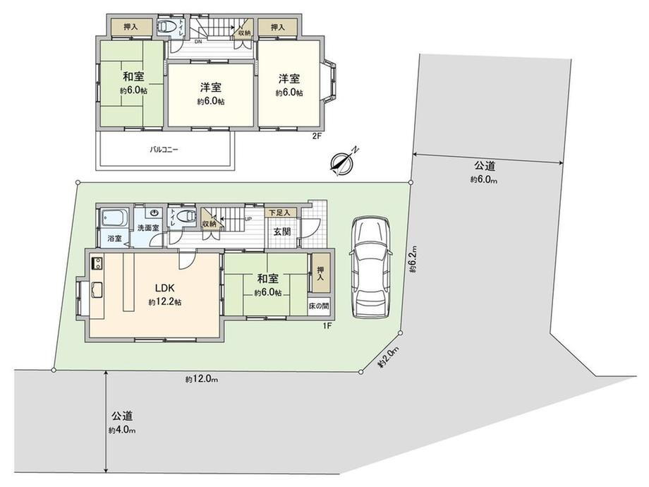 | 接道状況 | 南東4m接面12m 北東6m接面6.2m 二方道路 |