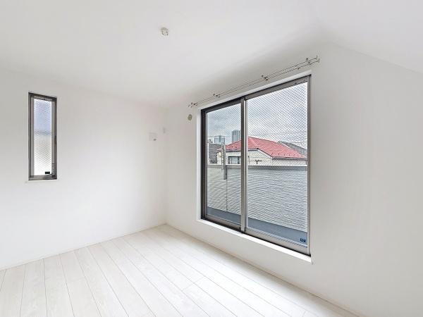 大きな窓から光が差し込む明るい洋室です。白を基調とした清潔感のある内装が印象的です。収納スペースも備わっておりお部屋をすっきりと使えます。シンプルなデザインで幅広いインテリアに合います。