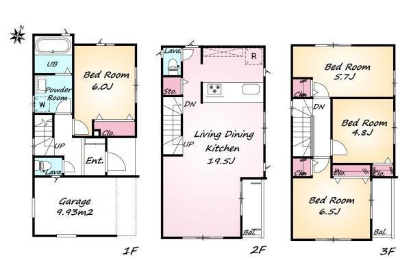 3980万円、4LDK、土地面積59.34m2、建物面積98.95m2 《間取り》■リビング中心の新生活。光を取り入れる開放的な設計で居心地の良い時間を演出します。