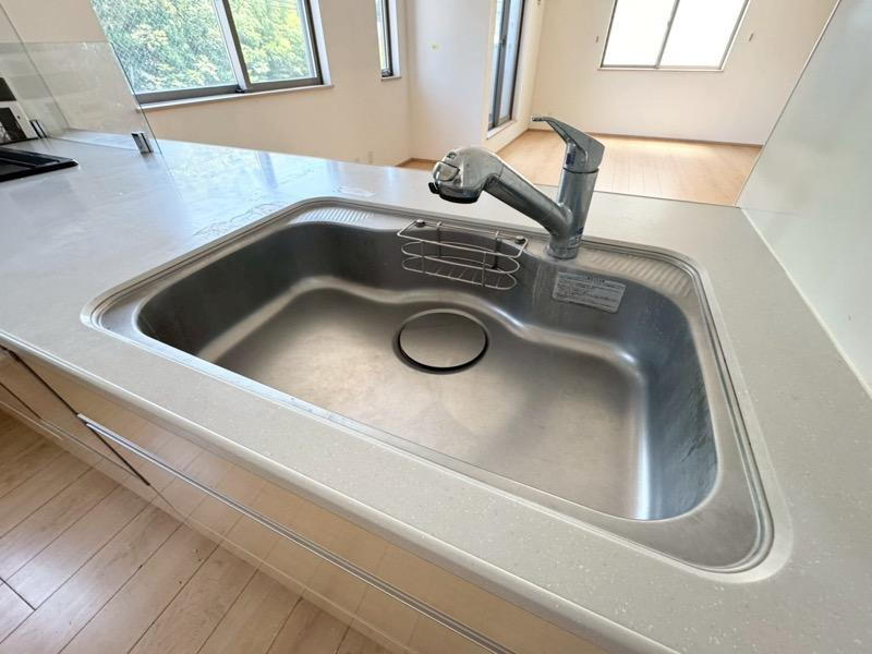 浄水機付きのステンレス製シンク。ワイドで奥行きがありますので、食器洗時のストレスも減りそうです。
