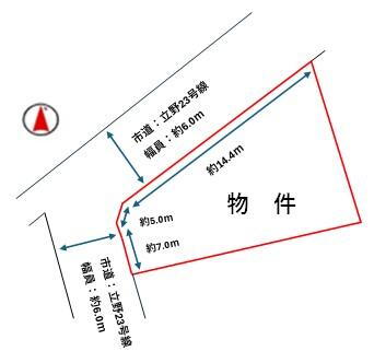| 接道状況 | 北西6m接面14.4m 南西6m接面7m |