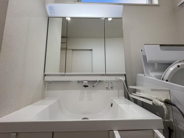 三面鏡の洗面で収納も多く便利です!