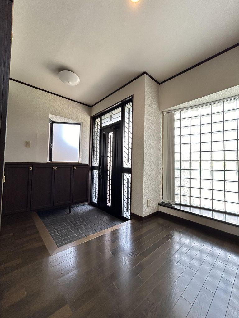 ガラスブロックがデザインされた明るい玄関。収納も充実しています。