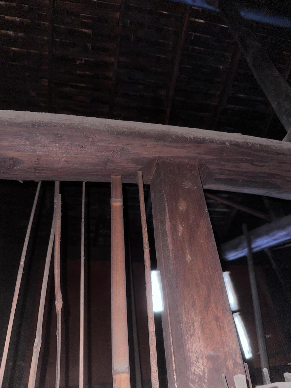 屋根裏(丸太)