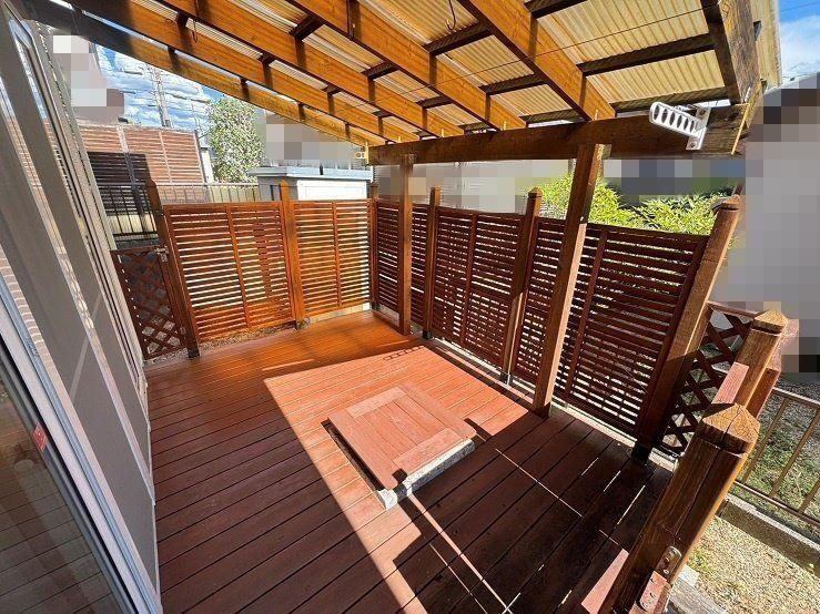 ◆南側お庭にバーベキューの出来る屋根付きウッドデッキとシンクあり◆