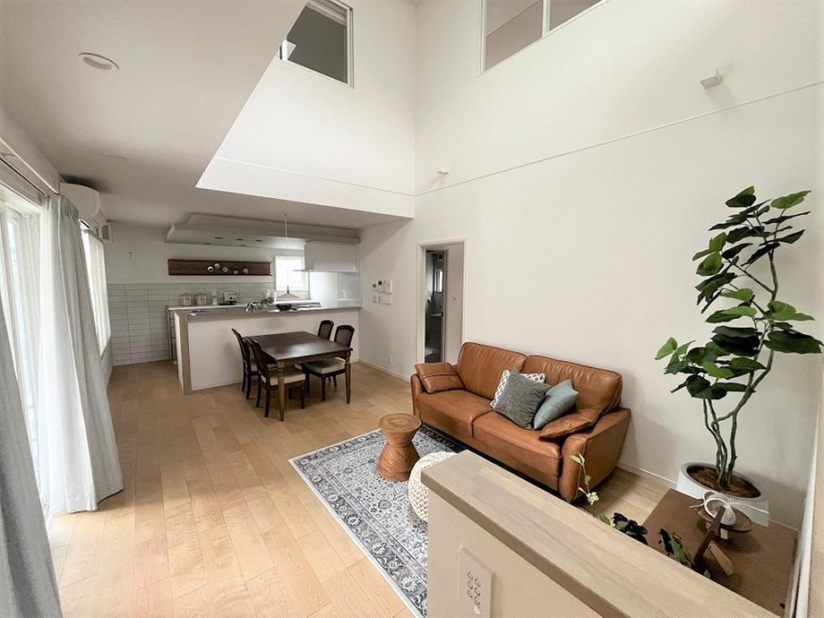 • リビングです。吹き抜けからの自然光でLDKは明るく開放感のある空間となっています。
