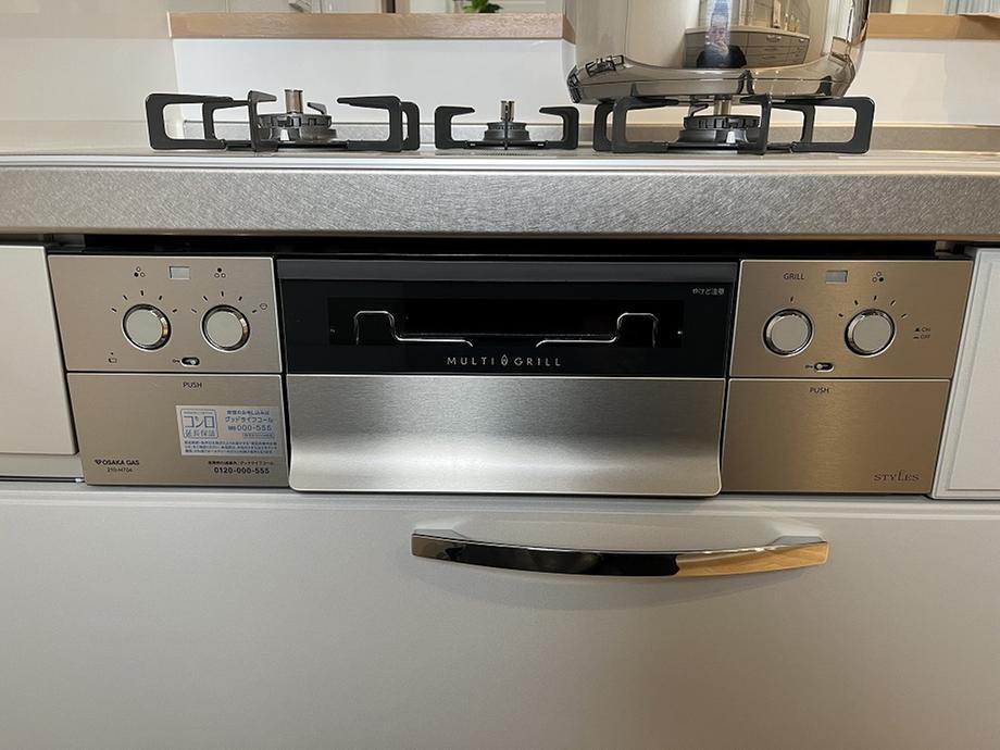 • グリル付き3口ガスコンロが搭載。同時に複数品を調理可能です。お料理のレパートリーも増えそうですね。