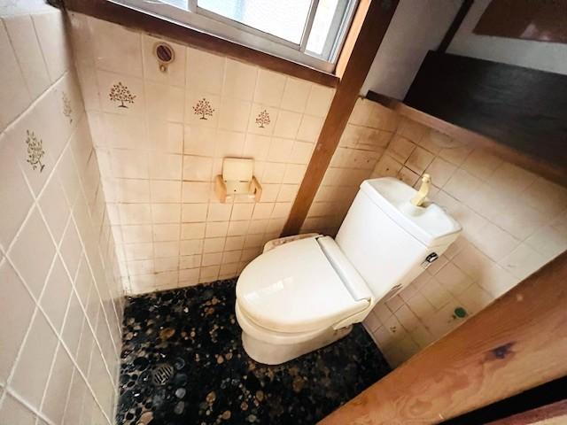 窓があってトイレ上部には収納スペース有り。 -