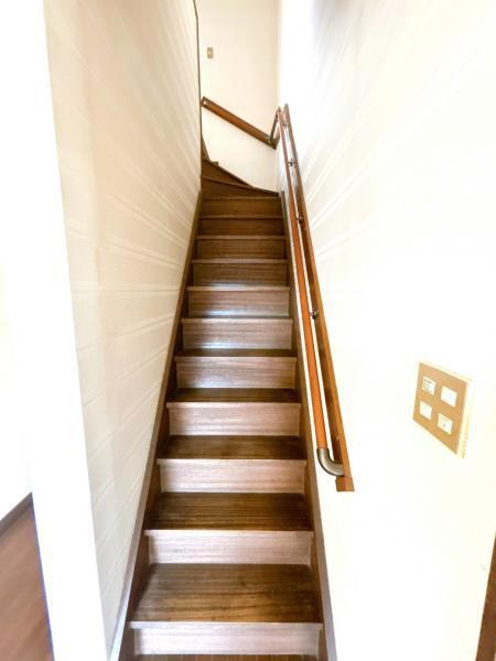 【現況写真】階段です。手すりがついていますので、お子様やお年寄りの上り下りも安心ですね。