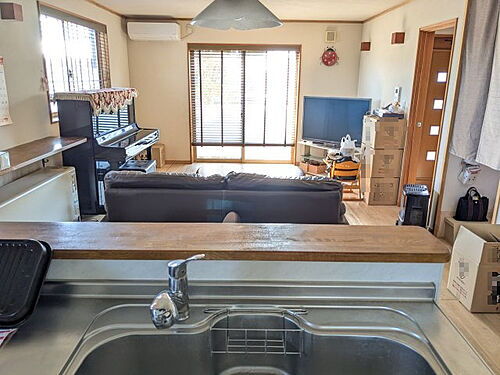 対面キッチンからリビングが見渡せます。
