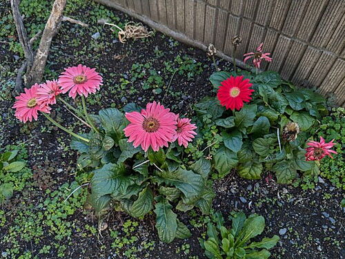 お庭の一角では花が