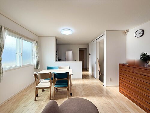 【LDK16帖】広々としたリビングダイニング。ゆったりとしたキッチン。生活動線をLDK に集中させ、ご家族が過ごしやすい空間設計にしました。