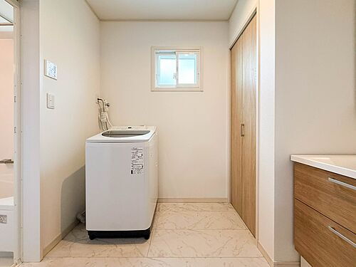 【ランドリースペース】毎日使う洗濯機。しっかりと奥行きのある置き場が確保されています。